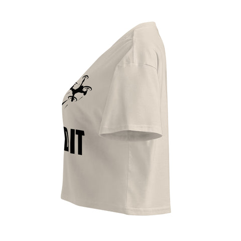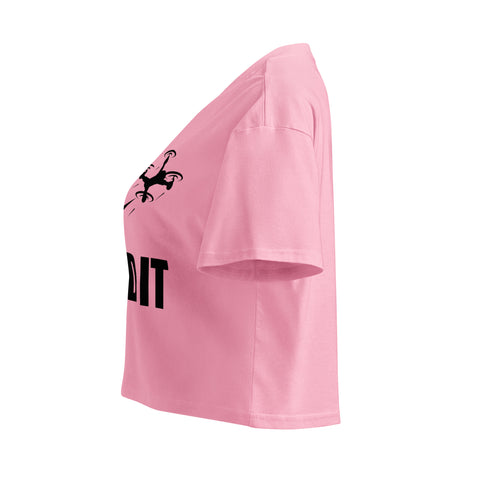 This crop top is made of 100% combed cotton, which makes the shirt extremely soft and more durable than regular cotton shirts. The relaxed fit and dropped shoulders ensure comfortable wear, while the cropped length makes it perfect for spring and summer.